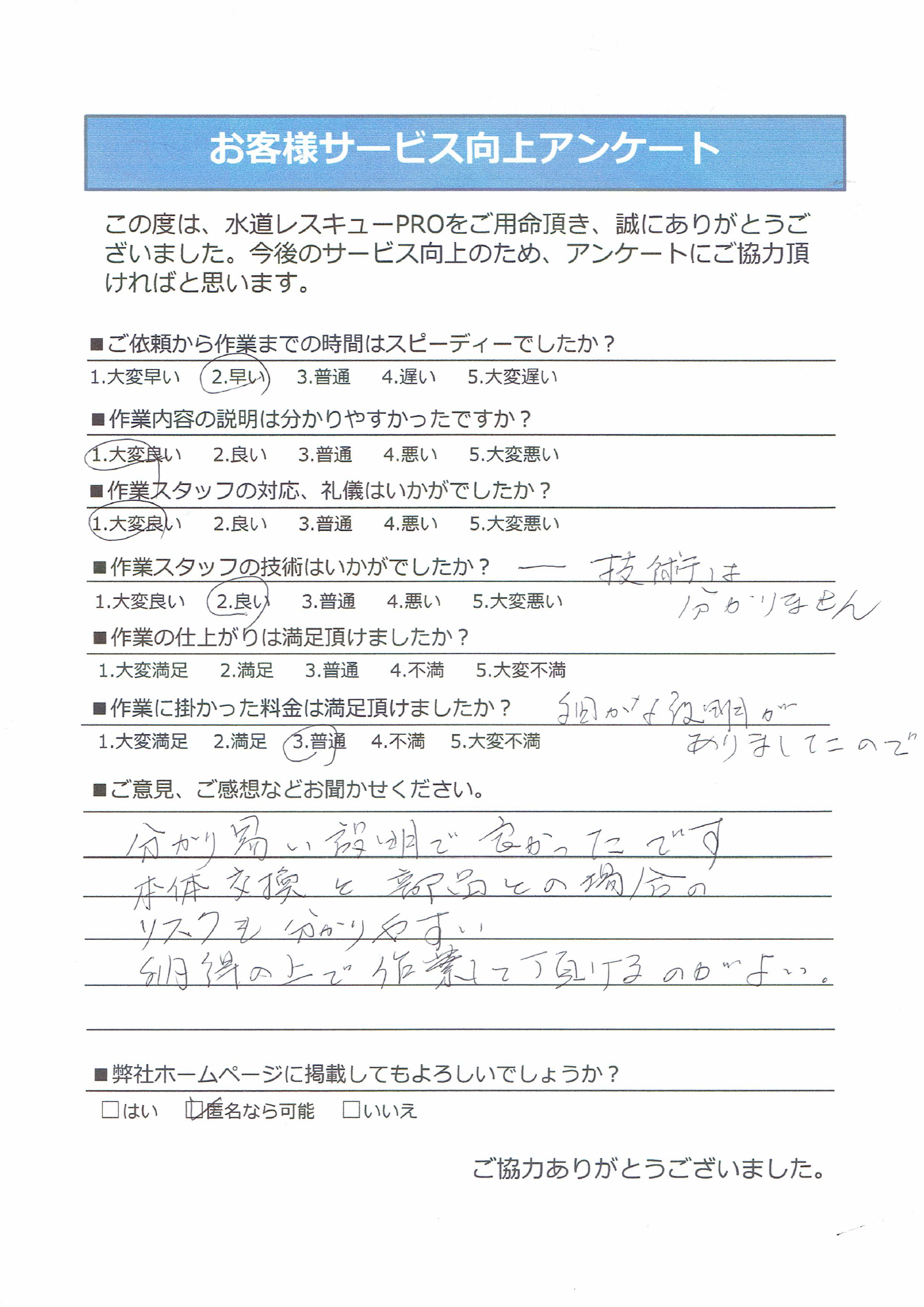 作業を開始するまで料金は一切かかりません。作業開始の際にも、作業のご説明をさせていただきますので、お客さまにご納得いただだいた上で作業を開始させていただきます。